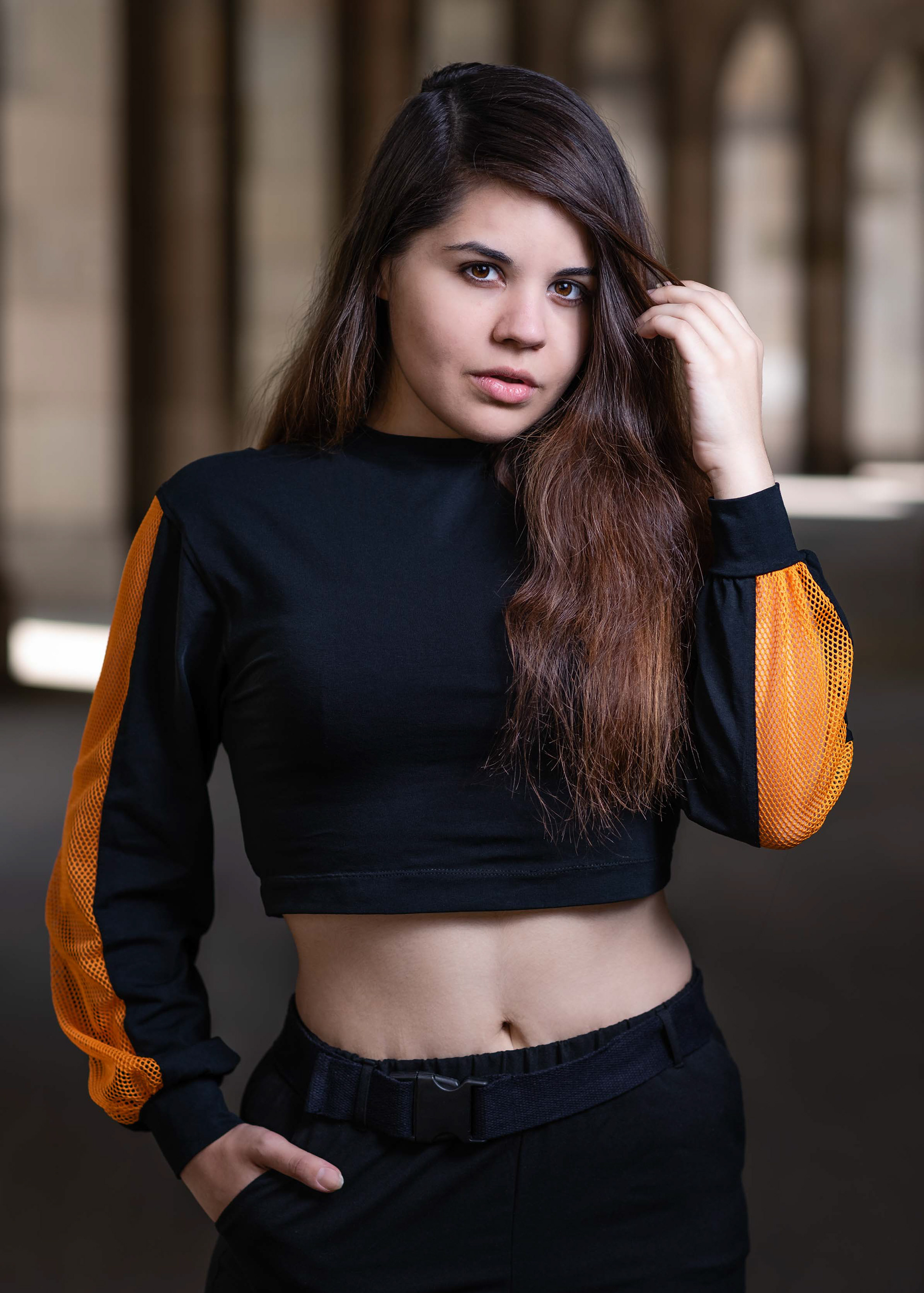 Dynamische und ausdrucksstarke Fotografien, die Persönlichkeit und Stil vereinen. Dieses Shooting mit Alexa zeigt eine Kombination aus urbanem Flair und sportlicher Eleganz.